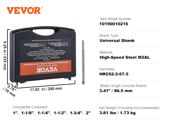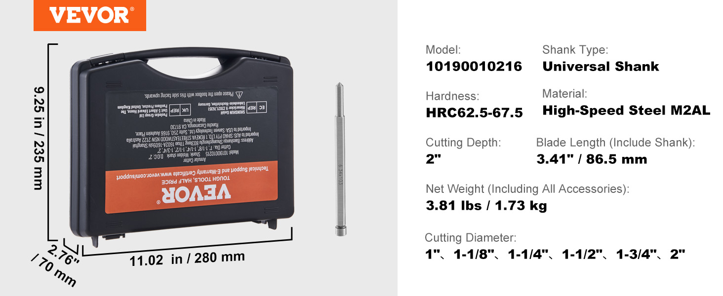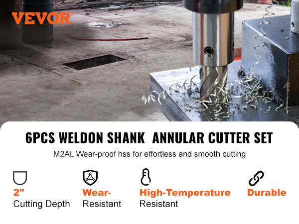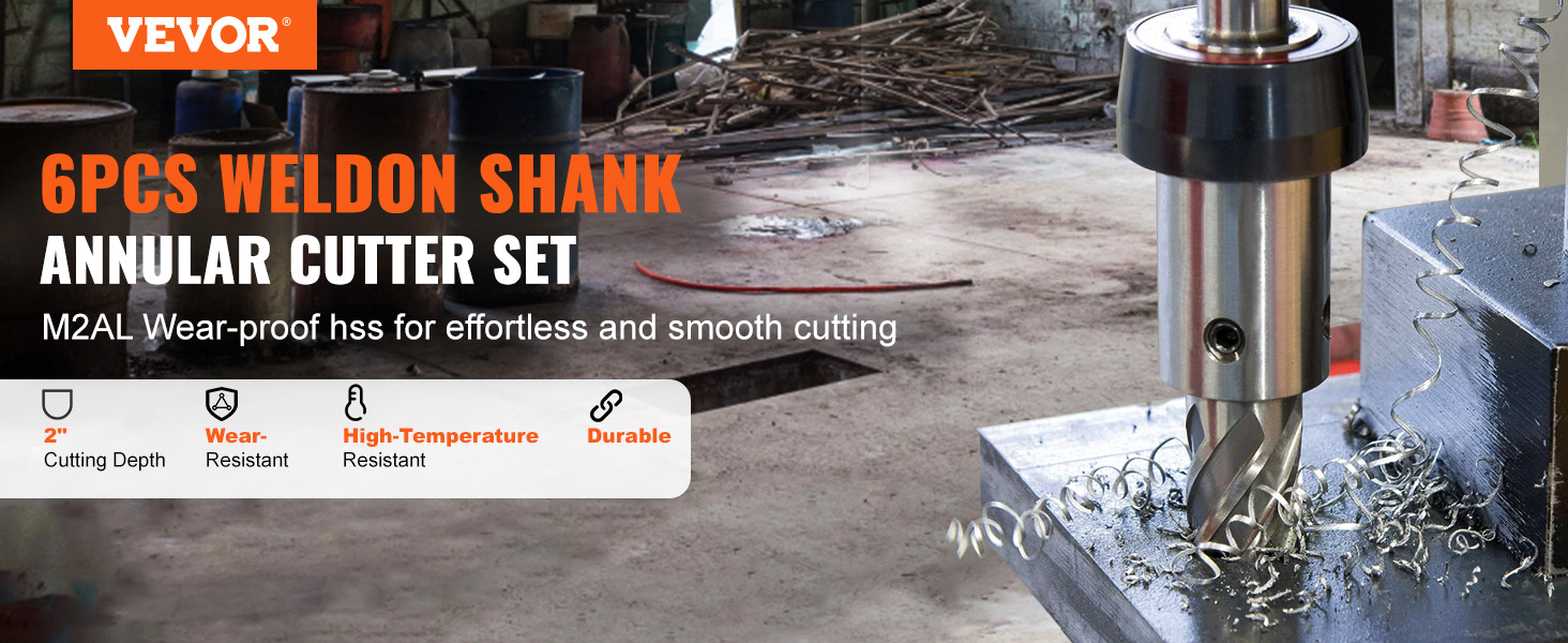 Once you go Universal you will NEVER go back to that crappy Weldon shaft. The Weldon CANNOT be properly centered (the set screws offset the bit from the shank) and they are such a PAIN to change: find hex wrench, loosen screws, oops went too far, screw comes out, screw hunt, find screw, get cutter on shaft, tighten screws, can’t get good angle so flip wrench, over tightened, cutter wobbles, drill anyway, bad cut that is not clean and maybe oblong, rinse and repeat. Universal? Pull the collar, drop the prior cutter, insert new cutter, press to click, start cutting! Cuts perfectly circular. Just so easy. Will NEVER go back to Weldon. This set was great, covered imperial and at larger diameter than my metrics I got with my magdrill. Vevor, if you are listening, we still need a set of imperials in the 0-1” range (counterpart to the metric set that came with my drill). Anyhow, the one caveat is these are not carbide, so don’t ruin them on armor plating. But so far working great for me. BTW, there are people/companies you can find on line to sharpen these for a reasonable price so these can be a long term investment. Strongly recommend universal shank and these cutters.