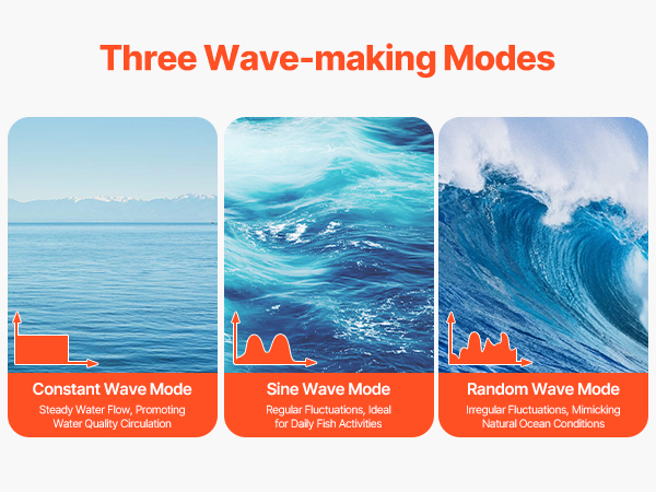 • Simulate Real Ocean Currents: Featuring three wave modes: wave mode, random wave mode, and constant wave mode. This aquarium wave maker mimics real ocean currents, creating a natural environment for fish and corals
