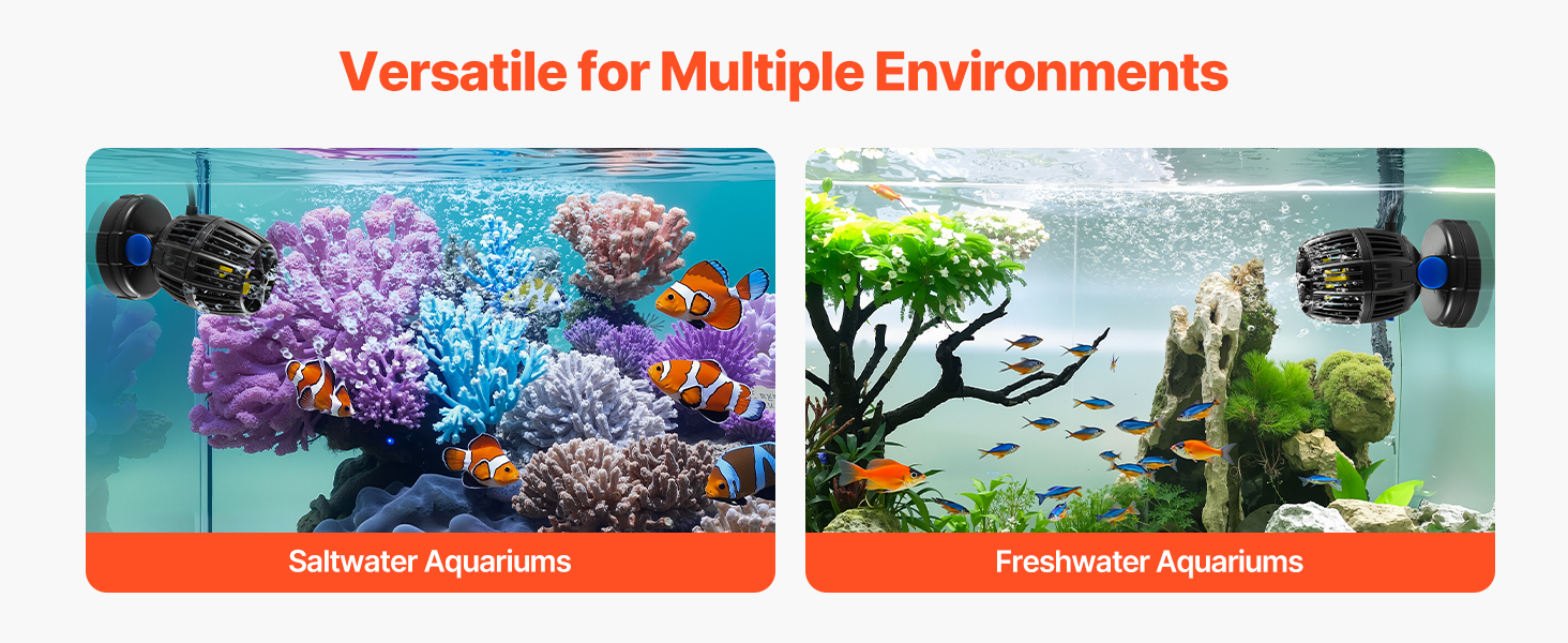 Ideal for both freshwater and saltwater aquariums, this wave maker adapts to different setups, fulfilling the needs of various environments.