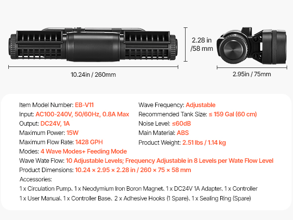 - Multi-Functional Controller: Adjust wave frequency and water flow rate with ease. The multifunctional controller includes a feed mode and key lock for the remote, providing complete control over your tank’s environment