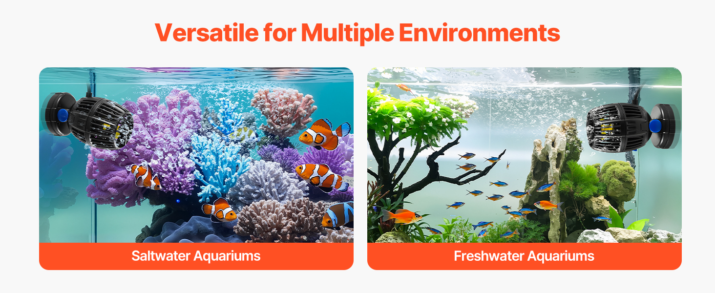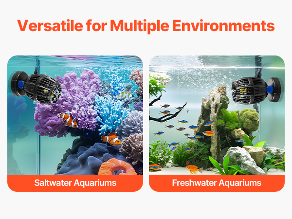 Ideal for both freshwater and saltwater aquariums, this wave maker adapts to different setups, fulfilling the needs of various environments.