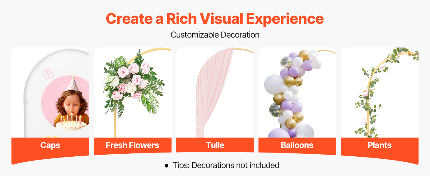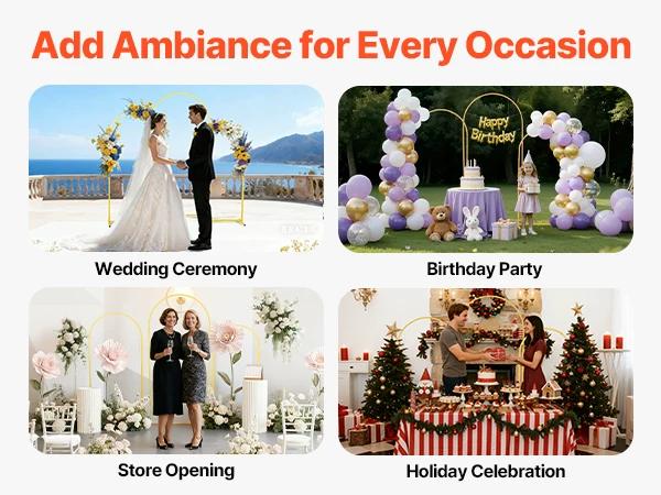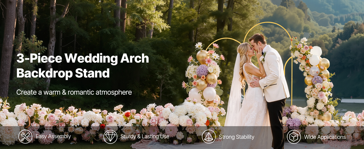 • Versatile Use: Ideal for weddings, parties, holiday celebrations, or store opening decorations, the metal arch stand allows flexible decoration with balloons, flowers, tulle fabric, LED lights, and more. (NOTE: Decorations are not included)