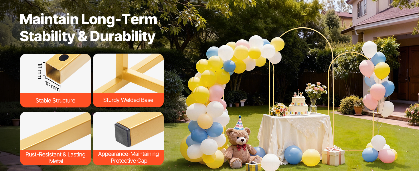 • Stable Support: This metal arch backdrop stand features a reinforced base welding. It enhances structural stability, provides solid support, and reduces wobbling to ensure your decorations stay in place
