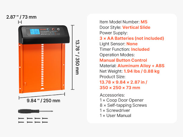 - Fits Most Coops: Easy to install with included instructions and tools. This electric chicken coop door is suitable for various setups, from backyard coops to small and mid-sized farms, meeting diverse poultry-keeping needs.