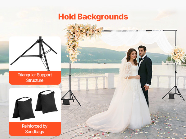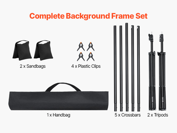 • Complete Accessory Set: This photo backdrop frame includes heavy-duty clips to hold backdrops flat and wrinkle-free and sandbags to add weight and stability, especially for outdoor setups.