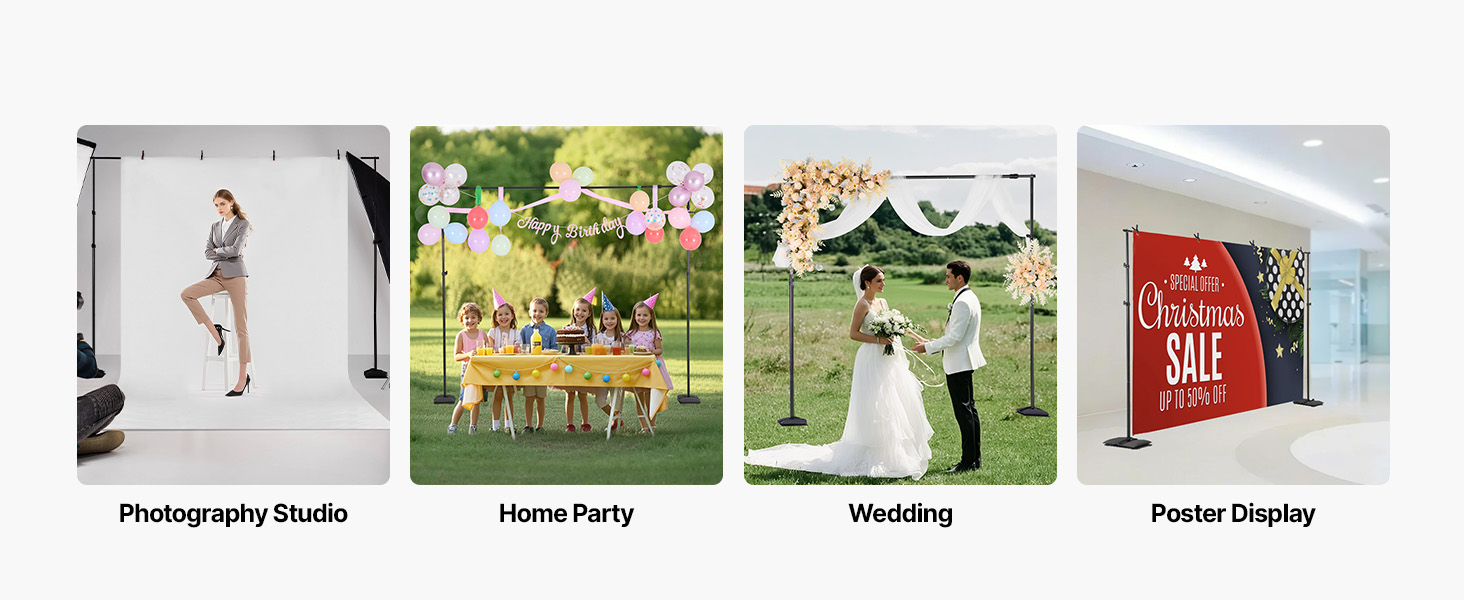 - Multi-Purpose Use: Our background stand is ideal for studio photography, weddings, parties, product displays, and more, meeting all your background needs.