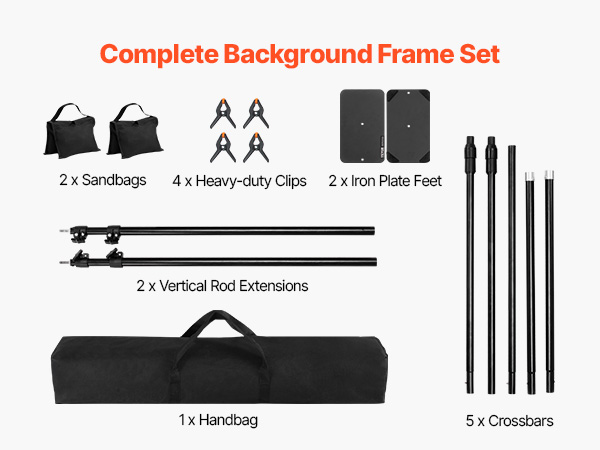 - Complete Accessory Set: This photo backdrop frame includes heavy-duty clips to hold backdrops flat and wrinkle-free and sandbags to add weight and stability, especially for outdoor setups.