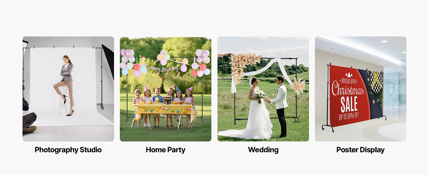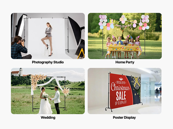• Multi-Purpose Use: Our background stand is ideal for studio photography, weddings, parties, product displays, and more, meeting all your background needs.
