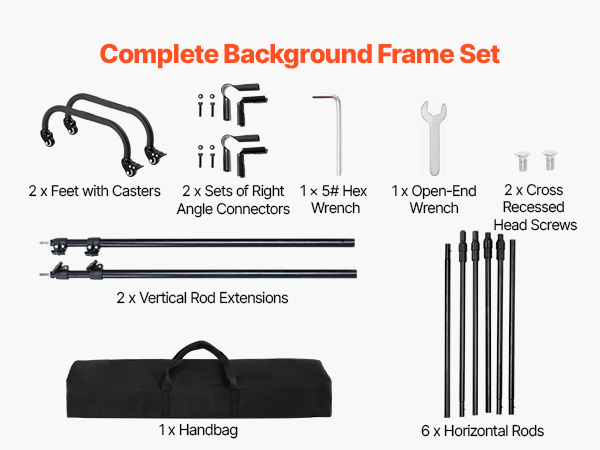 • Easy Setup & Carry: This backdrop holder has spring-loaded pins at each crossbar joint for quick assembly and disassembly, with no tools required. The carrying bag makes it easy to store and transport to set up the ideal backdrop anywhere.