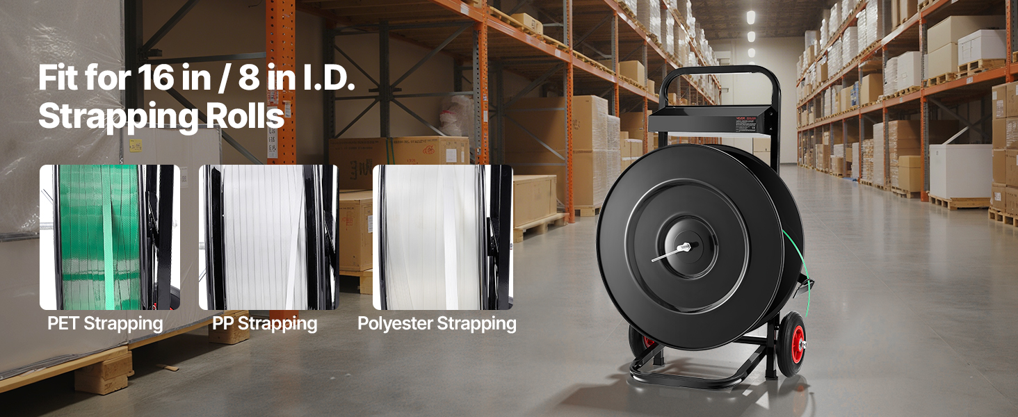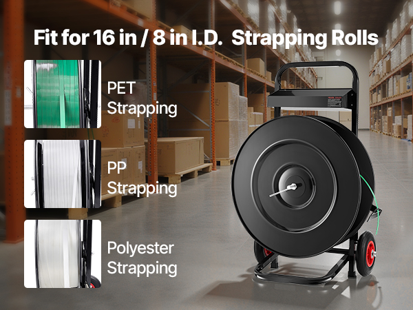 - Fits Multiple Strap Sizes: This all-steel strapping cart holds up to 110 lbs and fits 16 in/8 in core PET/PP/polyester rolls. Keep your straps neat and ready, increasing efficiency for heavy-duty work
