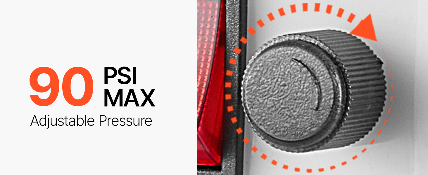 | Pump Output Pressure Range | 0-90psi, Stepless Adjustable |