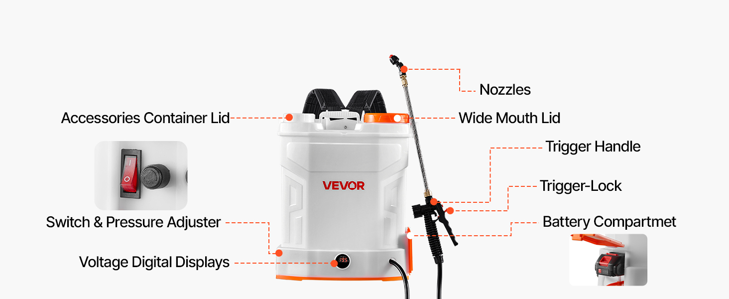 - Professional Accessories Kit: Includes 5 different nozzles and a dual-material spray rod, making the lawn sprayer versatile enough to tackle more than 10 spraying applications.