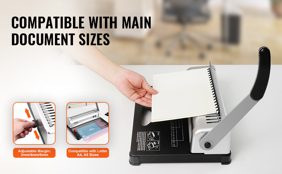 - Compatible with Various Sizes: This comb binding machine is suitable for Letter size, A4 size, A5 size, and more, ensuring strong compatibility for various document bindings.