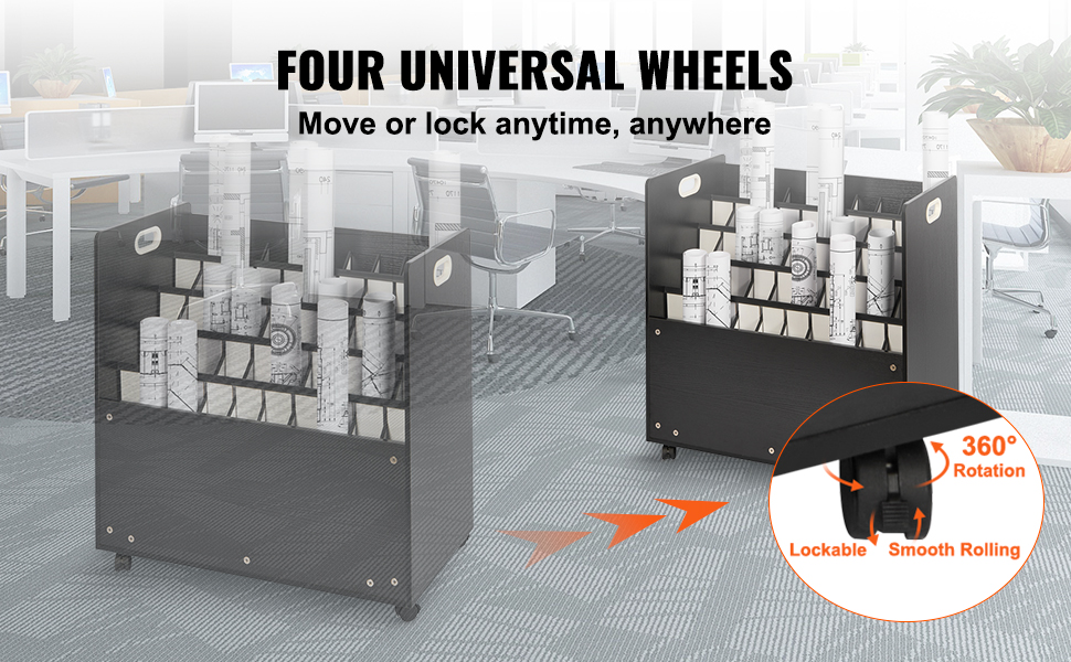 - Convenient Mobility: This blueprint storage organizer has four swivel casters, two of which are lockable, allowing easy movement to your office, studio, or workplace. Documents remain secure and organized during transport, enhancing portability.