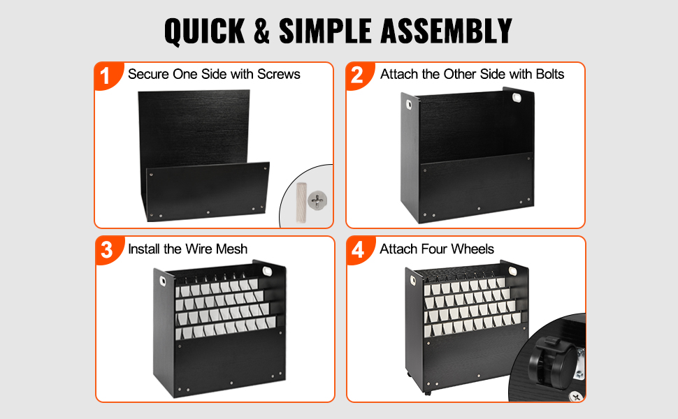 I would have given 5 stars but it was missing one screw, which I can find another to fit in the spot (they gave me an extra nut though) and all 4 wheels are supposed to be threaded like a screw to thread into their holes … But one of them was completely smooth so I couldn’t thread it in, it just slipped out. I used hot glue to get it to stay because I don’t want to take it all apart to return it… It should work right? Lol Quality otherwise.