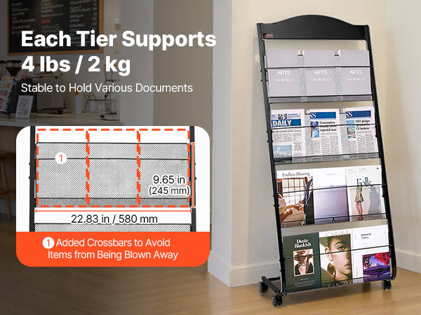 - Sturdy and Durable Structure: Made of thickened metal material, the brochure display rack has a smooth and elegant surface, and is rust-proof and corrosion-resistant. Each layer can bear 4 lbs/2 kg, so it is not easy to deform even when placing heavy items
