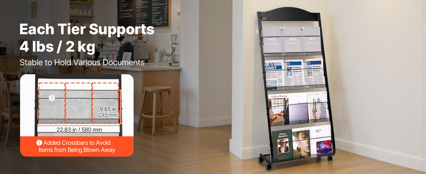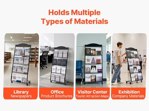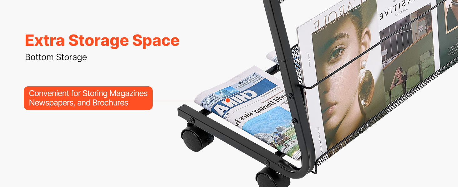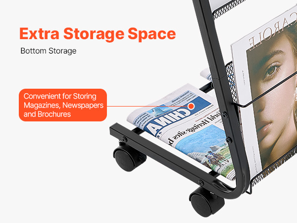 - Flexible Movement & Fixation: Equipped with four 2 in casters(two with brakes), allowing easy movement and stable fixation. Whether you are adjusting the position daily or moving it, this standing magazine holder can bring you a smooth user experience