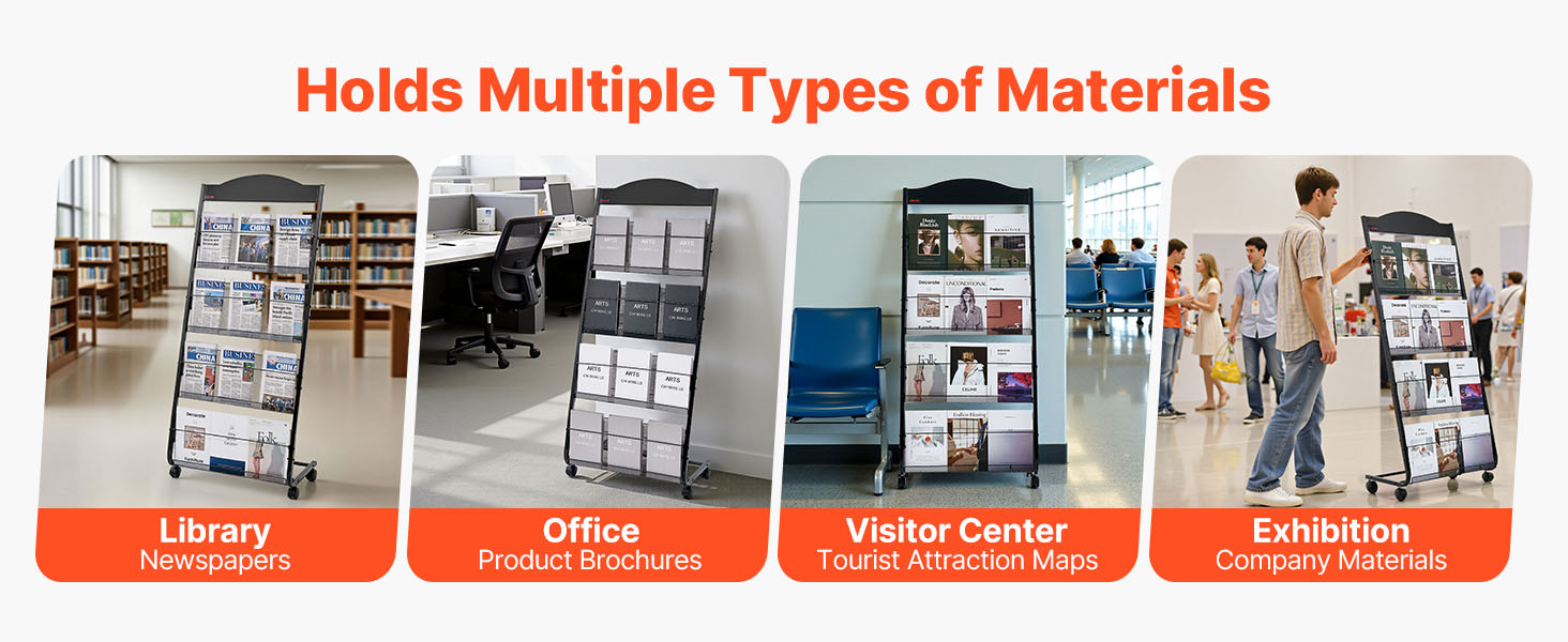 Suitable for storing and displaying various types of materials, including documents, brochures, magazines, manuals, etc. It meets the needs of different usage scenarios and has sufficient space to help you efficiently manage and display various materials.