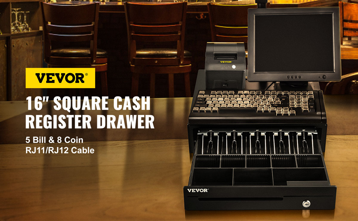 Are you annoyed when it comes to keeping your cash and coins organized? The VEVOR mini cash register will help you organize them efficiently. You can use the cash drawer for a long time due to its premium steel board and ABS plastic. It comes with 5 bill trays and 8 adjustable coin trays, which could keep your cash or coins orderly. There are 3 convenient and secure ways to open the register. It also supports other electronic devices, like receipt printers. It is especially suitable for supermarkets, restaurants, and bars. Stop fumbling through cash piles and running the risk of losing or misplacing money. Get yourself or your business a premium cash drawer.