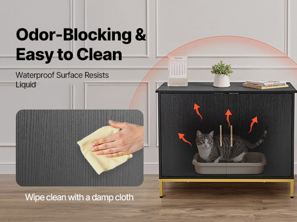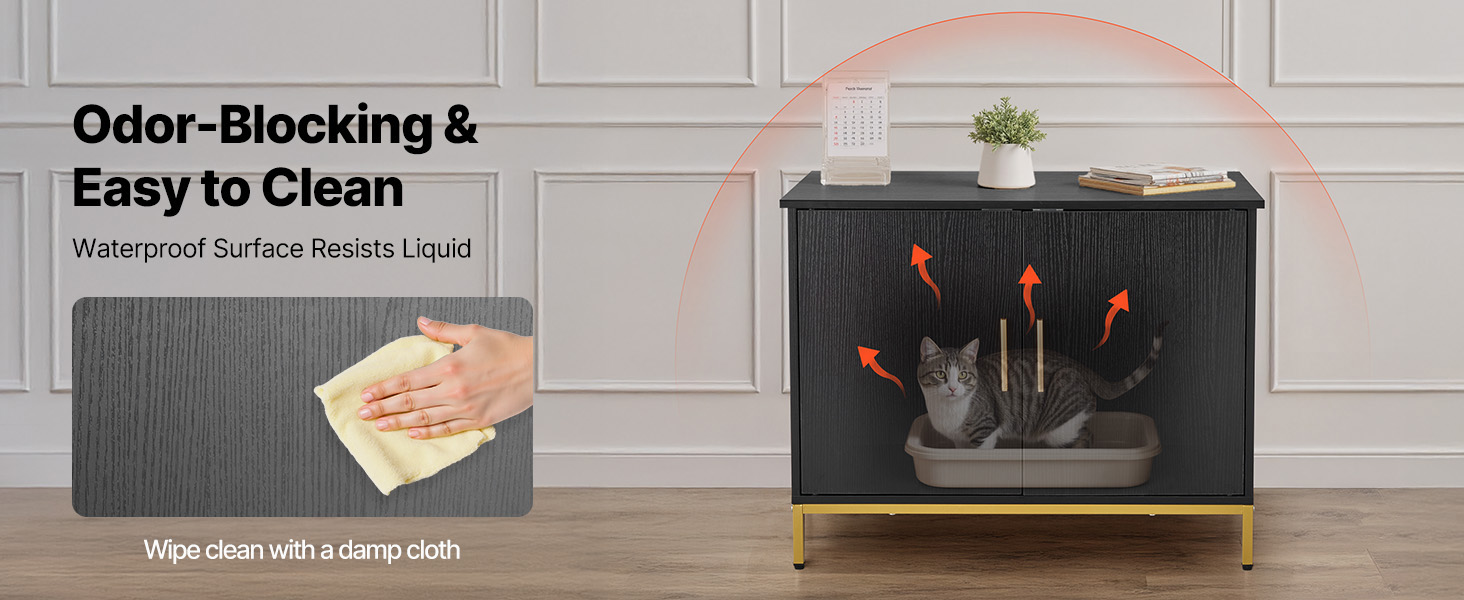 The cat litter box furniture features an enclosed structure combined with a waterproof finish, which resists liquid penetration and blocks odors. Provide you with fresh indoor air.