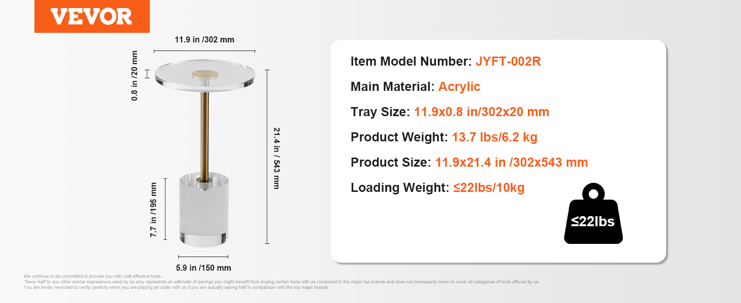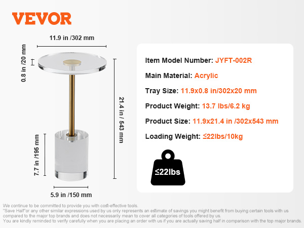 With a height of 21.4 in/543 mm, our acrylic end table creates a small storage space around you. Provide convenient access to belongings at hand!