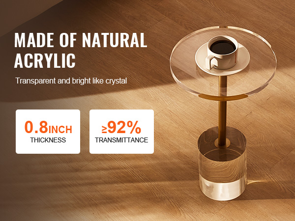 The acrylic end table is made from natural acrylic material. Its transparent design exudes a crystal-clear brilliance, matching various home styles and spaces. With a 0.8in/20mm thickened panel, it ensures enhanced loading capacity, providing the same stability as a wooden table.