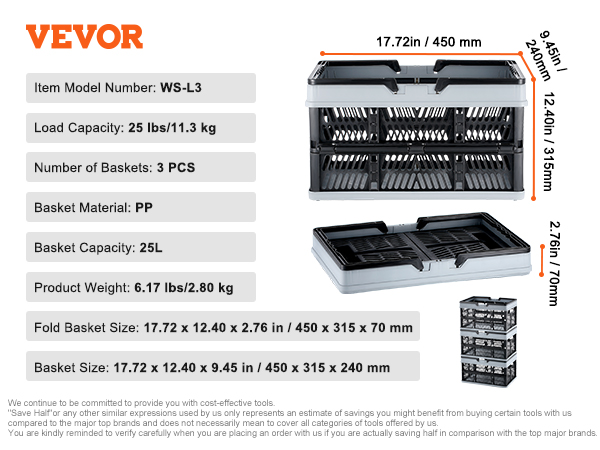 | Folded Basket Size | 17.72 x 12.40 x 2.76 in/450 x 315 x 70 mm |