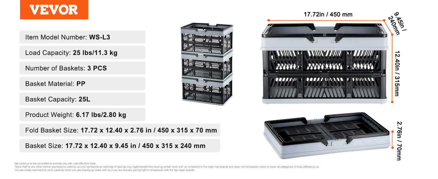 | Number of Baskets | 3 PCS |