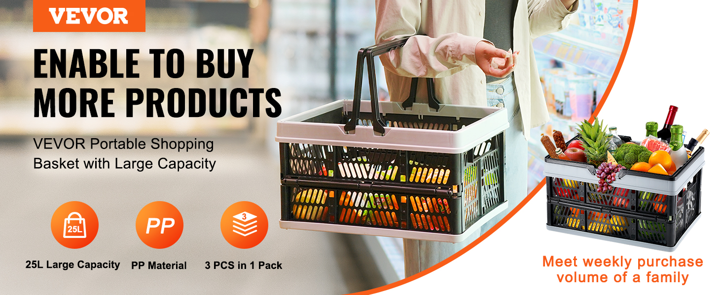- Large Capacity: Our 25L capacity shopping basket takes the stress out of carrying your goods. Ideal for families, it holds a week's worth of shopping and comes in a set of 3 for easy sharing, suitable for storing fruits, vegetables, shampoo, and various groceries.