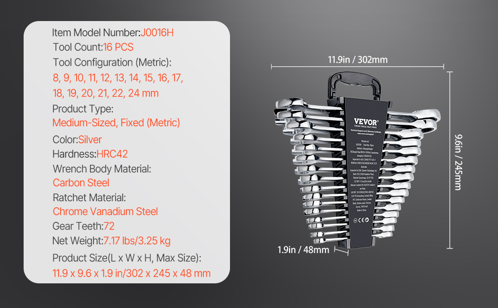 | Ratchet Material | Chrome Vanadium Steel |