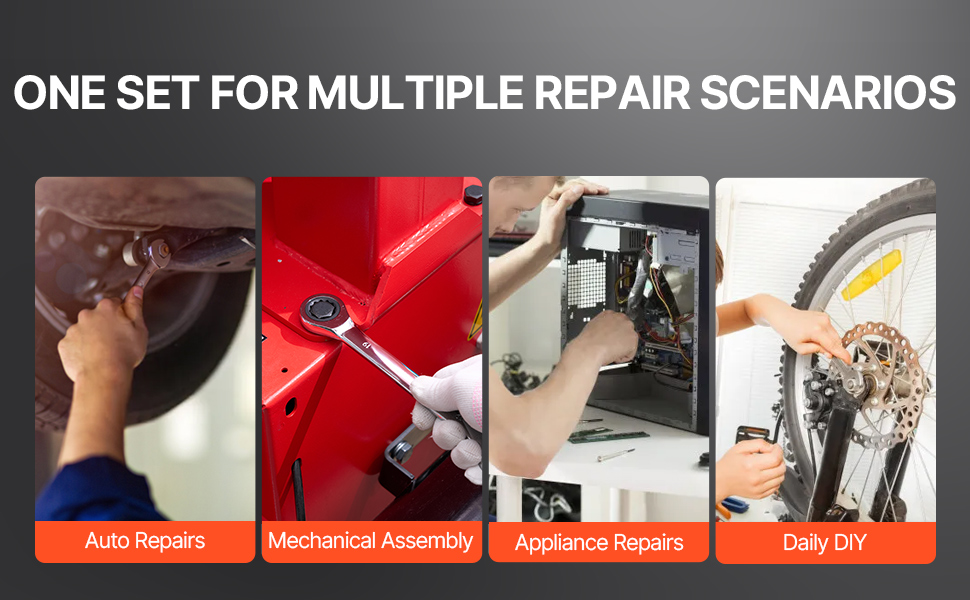 This labor-saving ratchet wrench set is ideal for various tasks, including automotive repairs, mechanical maintenance, and household fixes.