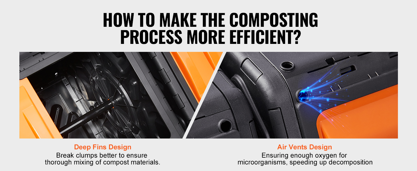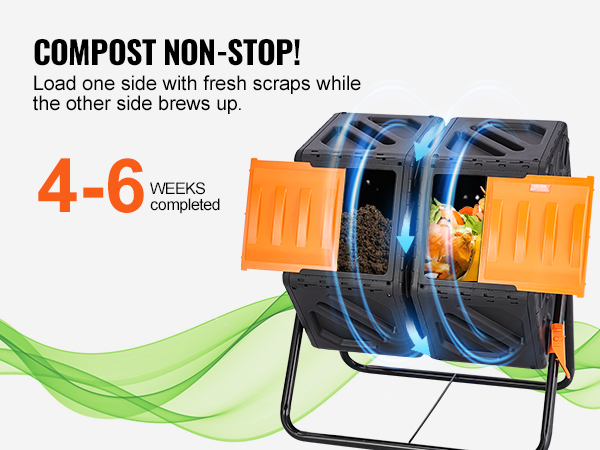 - Effortless Tumbling: Say goodbye to manual stirring. Our compost tumbler bin features two chambers that can roll independently by 360 degrees. This design ensures optimal mixing, resulting in faster decomposition and a higher yield of rich compost. Simply roll the chambers every few days, and you'll have compost in just 4-6 weeks.