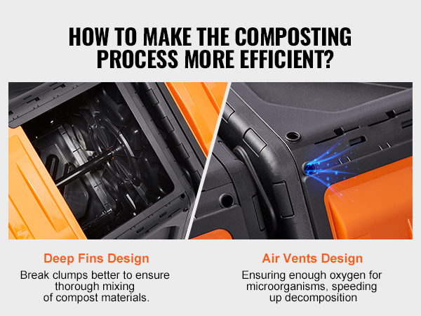 Deep internal grooves in the compost tumbler ensure thorough mixing of materials, while strategically placed vents provide essential oxygen for rapid organic matter decomposition. Say goodbye to unpleasant odors during the composting process.