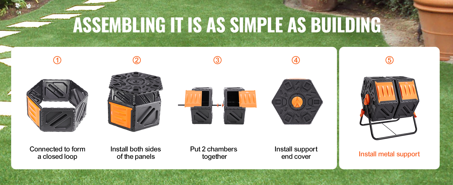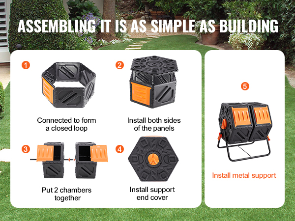 We provide a pair of gloves and a screwdriver along with clear instructions to make setting up your compost bin a fun and easy experience. It’s as enjoyable as building blocks.