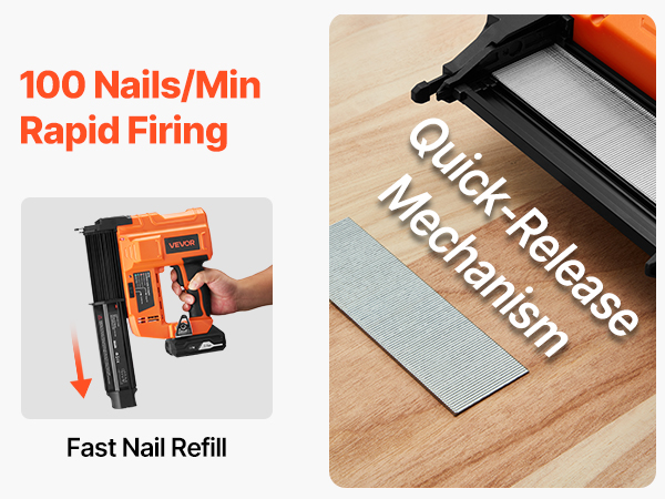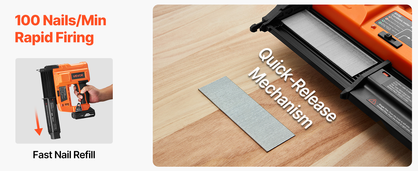 Our battery powered nail gun supports up to 100 nails/min firing rate, suitable for large projects requiring both speed and precision. Its continuous firing mode ensures smooth, uninterrupted performance.
