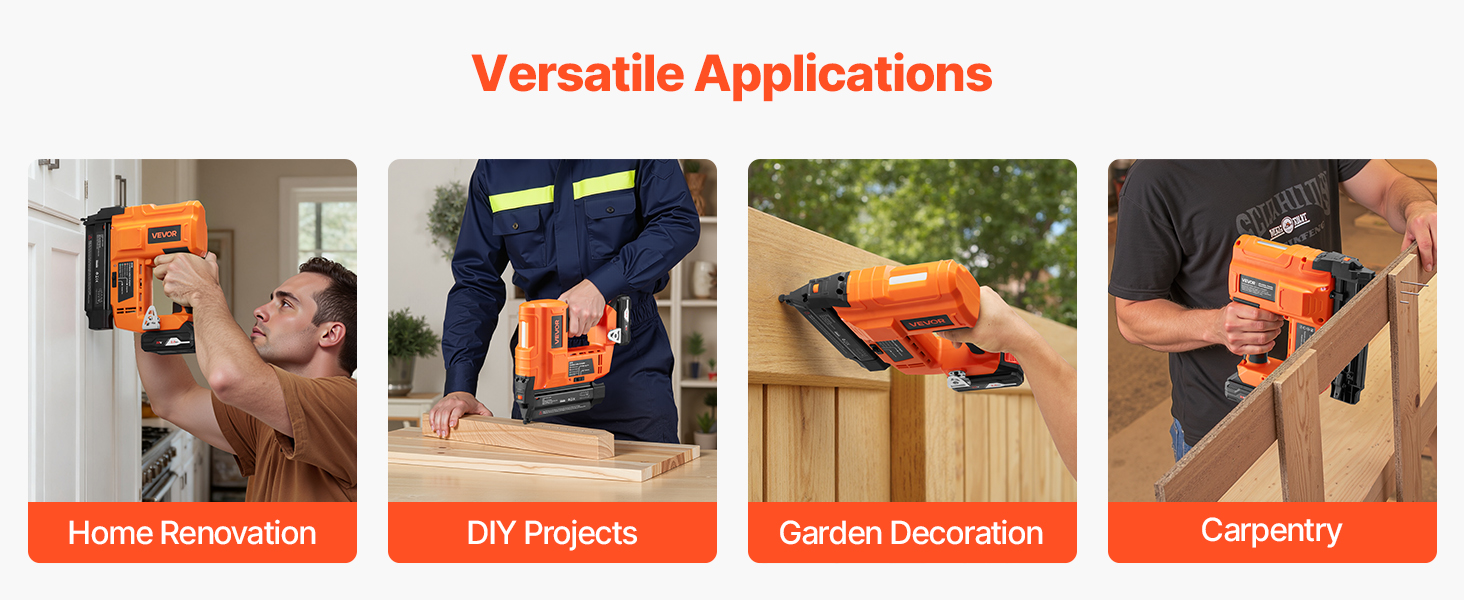 Our 20V brad nailer is suitable for interior renovation, furniture making, and woodworking projects. Whether you are a contractor, carpenter, or DIY enthusiast, it is your top choice.
