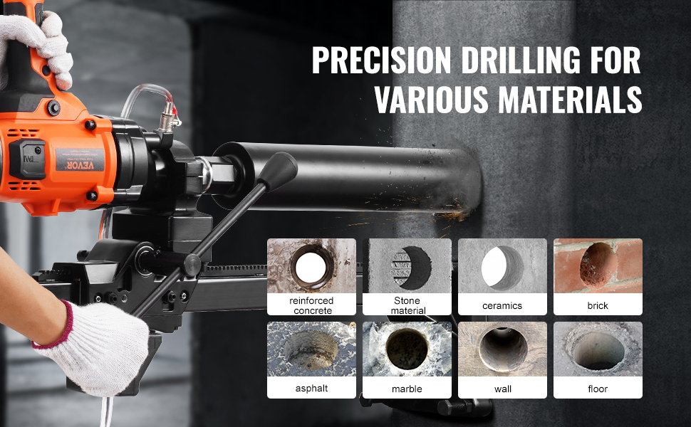 - Engineered for Precision Drilling: The coring drill is designed for easy operation when drilling through reinforced concrete, red brick, marble, and more. It meets professional standards and is versatile enough for various tasks like installing air conditioners, kitchen pipes, stair railings, and even highway maintenance.