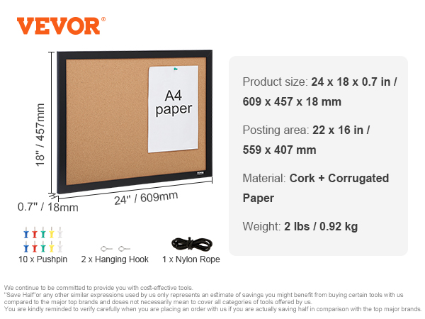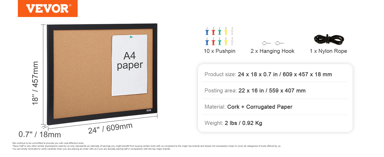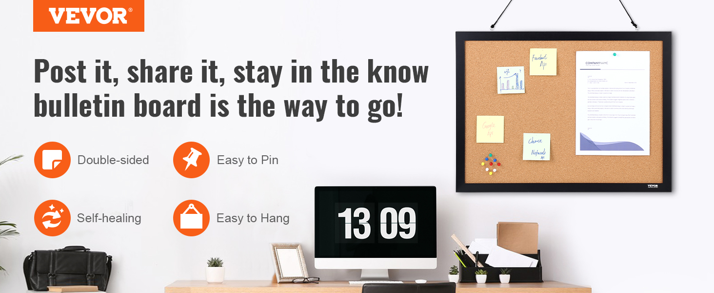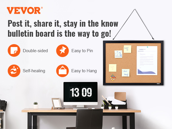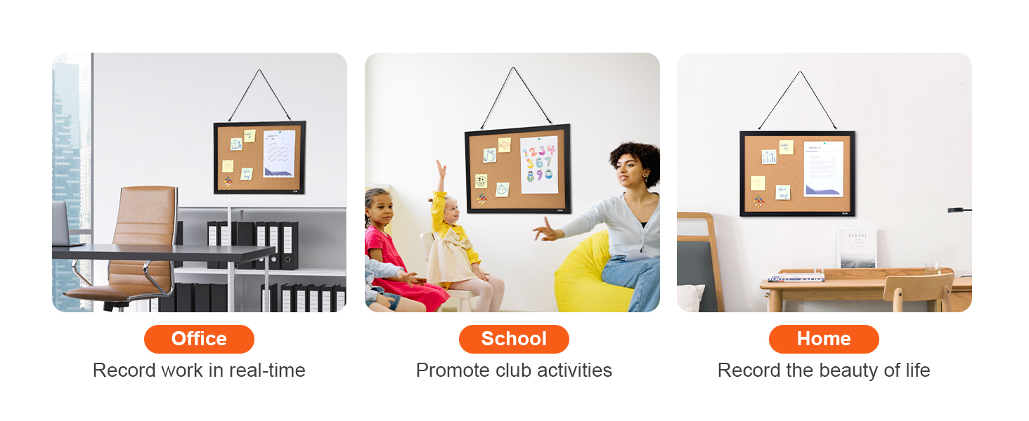 - Broad Utility: VEVOR's cork bulletin board is the perfect addition to any office, school, or home. Use it to record work in real-time, promote school activities, or capture the beauty of life at home.