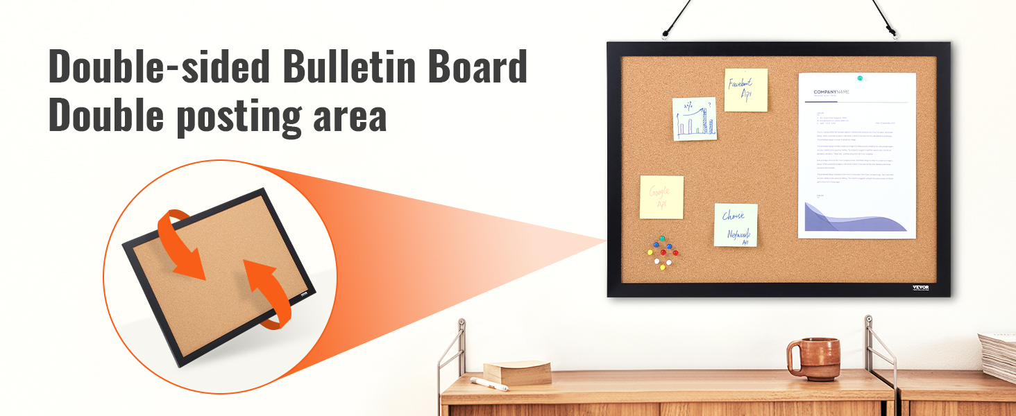 - Double-sided: Get double the posting space with VEVOR's 24''x18'' bulletin board featuring a double-sided design, giving you ample space to showcase your ideas, artwork, schedules, and more!