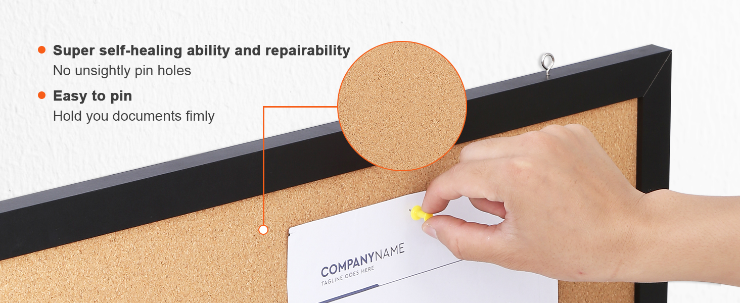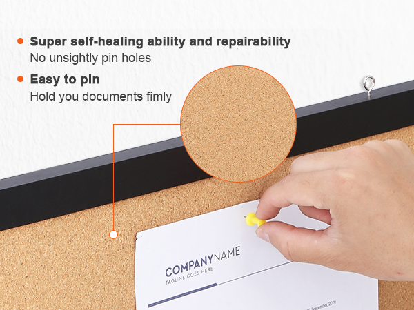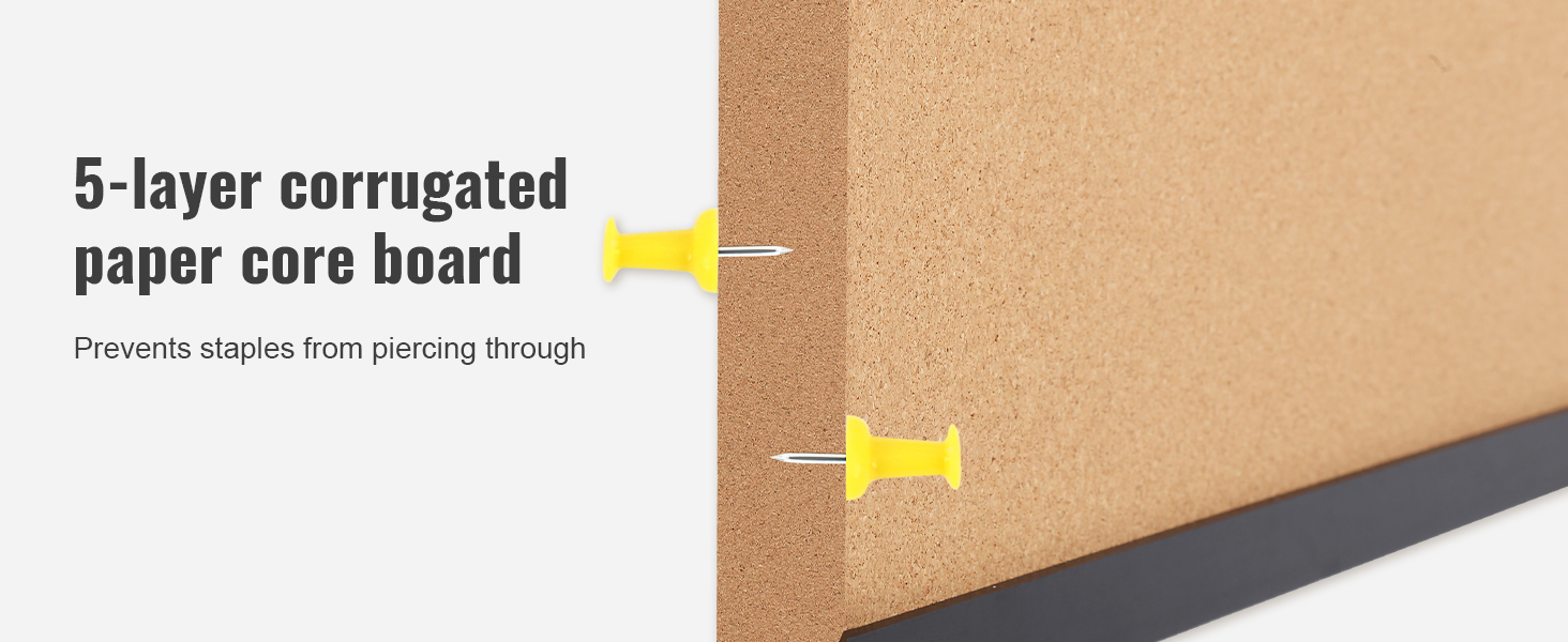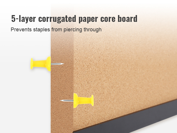 - High-Density Cork: Features a high-density cork surface that makes pinning notes effortless and ensures there are no unsightly pinholes even after long-term use. And the cork board's five layers of corrugated core board provide extra durability and make it resistant to piercing.