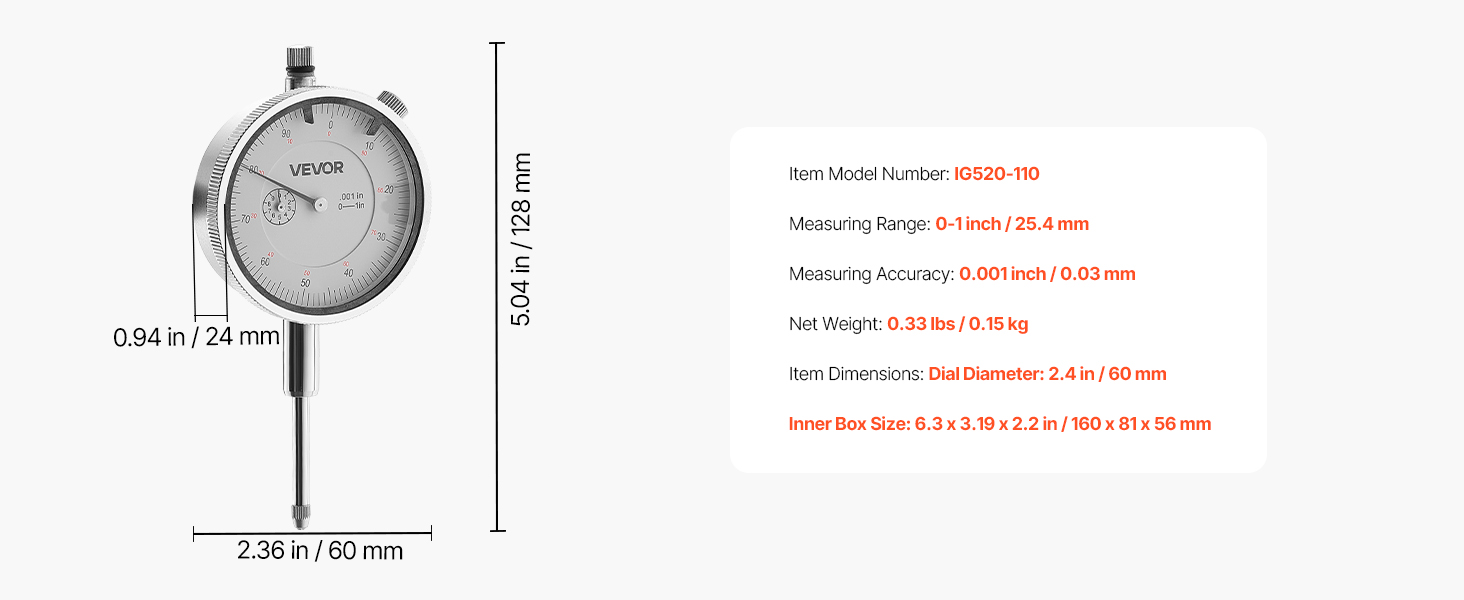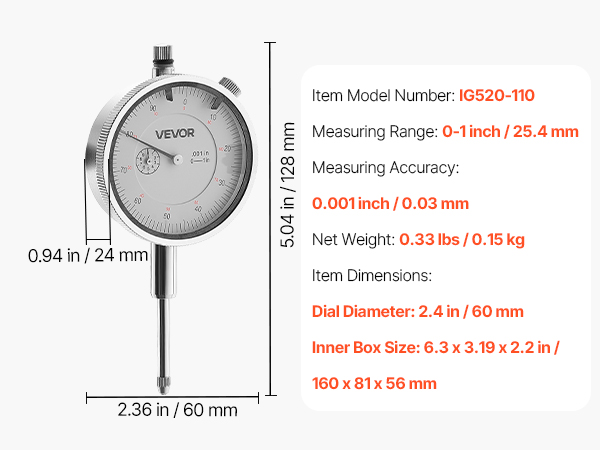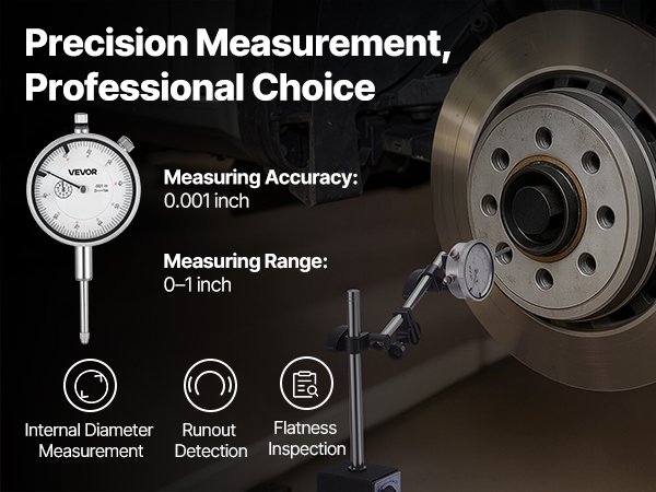 - Accurate Measurement: This dial indicator delivers 0.001 inch precision with clear readings and stable zero return. Ideal for lathes, milling machines, and other demanding industrial applications, helping reduce errors and improve efficiency
