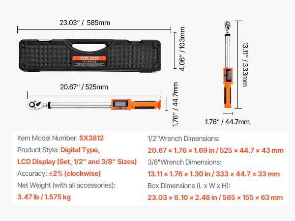 | Product Style | Digital Type, LCD Display (Set, 1/2″ and 3/8″ Sizes) |
