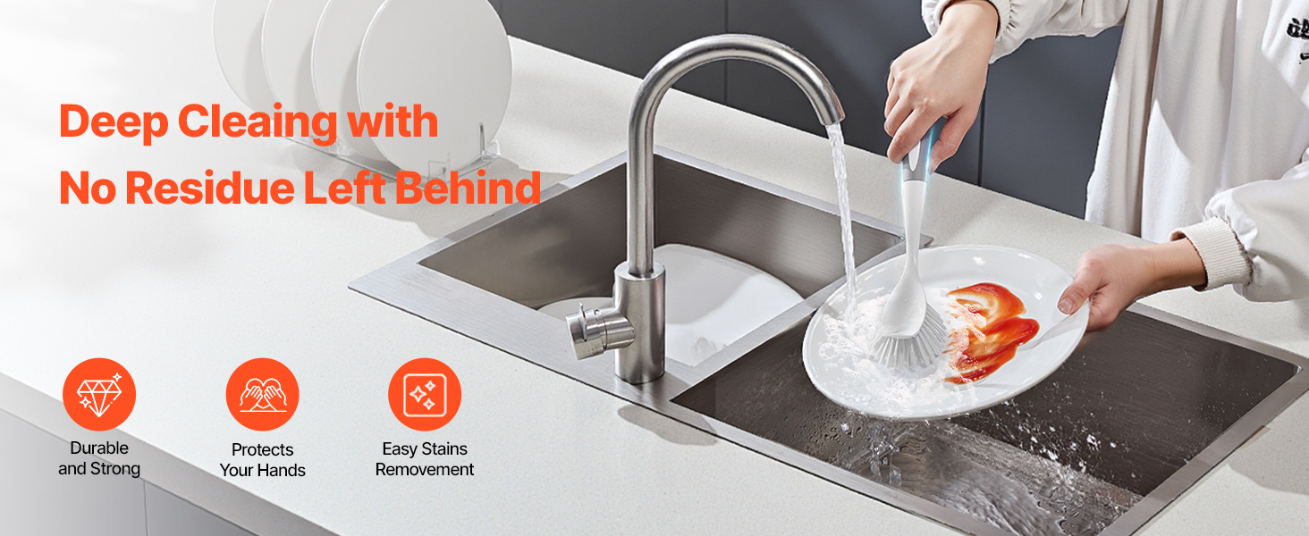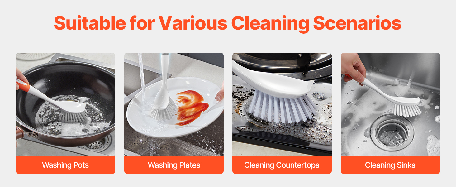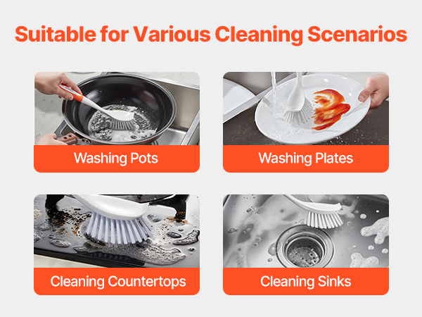 - Ideal for All Your Kitchen Gear: From dishes to non-stick pans, sinks to stovetops – this kitchen scrub brush is the versatile tool that handles it all. One brush, so many uses – your kitchen cleaning just got a lot easier