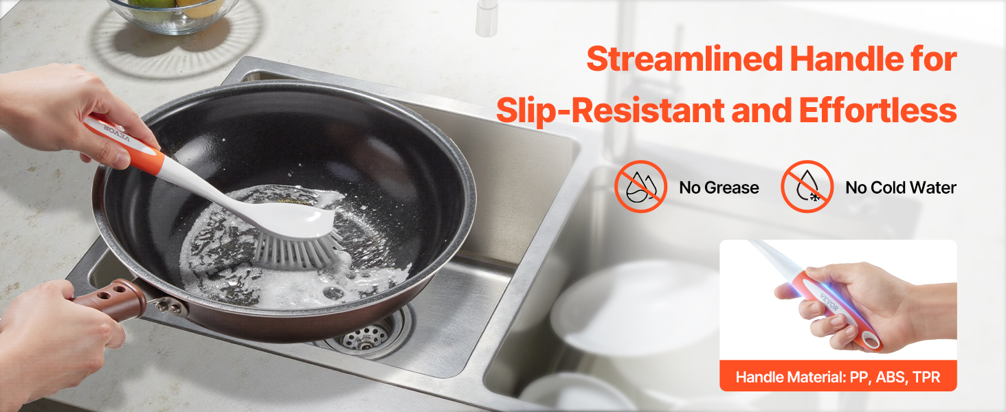 - No More Slippery Struggles: The ergonomic, easy-to-grip handle saves you energy, keeping your hands dry and free from greasy water while you clean. No need to dunk your hands into dirty water anymore