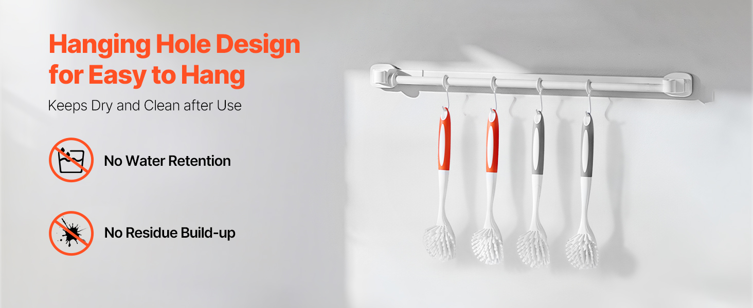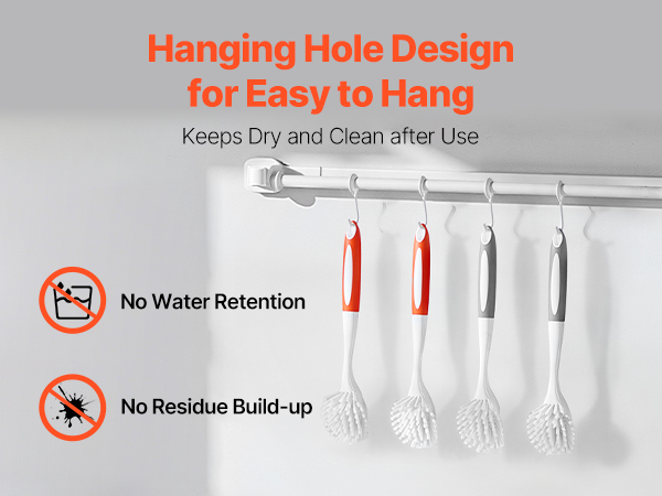 Thoughtful hanging hole design allows you to hang the brush on the wall or cabinet, keeping it dry by avoiding damp environments.