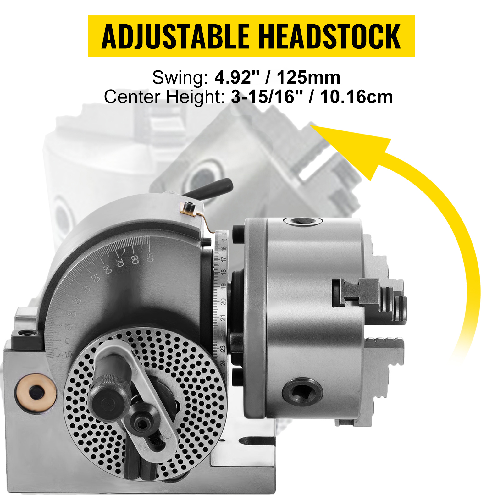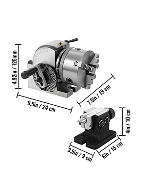- Easy of Adjustment: The headstock of the dividing head for the milling machine can tilt from 10 degrees below horizontal to 90 degrees vertical so that you can handle the stuff of different sizes by changing its angle.