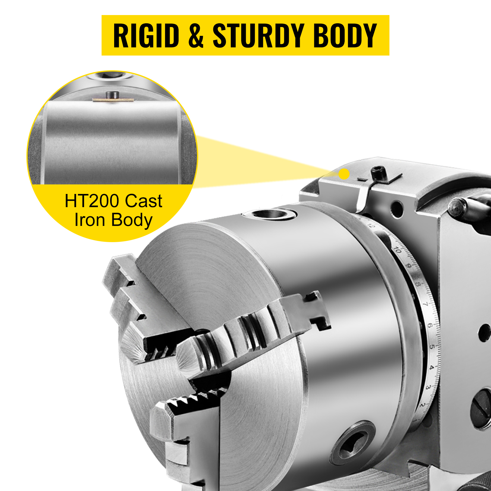- Solid Cast Iron Construction: Swing: 6-1/2"/168 mm. The dividing head features a rigid mirror finish that is wear-resistant, a good choice for long-term use. Its delicate parts work perfectly, mathematically dividing the materials to be cut.