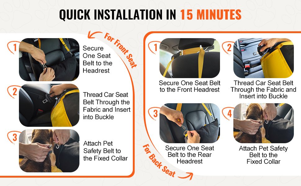 • Easy Installation for Travel: This dog booster car seat can be installed in both front and rear seats. It comes with two adjustable seat belts and one fixed pet safety belt. Secure the seat with adjustable premium buckles to prevent shifting, allowing you to focus on driving safely.