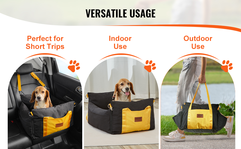 • Convenient & Practical Design: The pet car seat features side handles for easy carrying and a large side storage pocket for pet essentials. The front and back high backrests enhance safety during sudden stops.