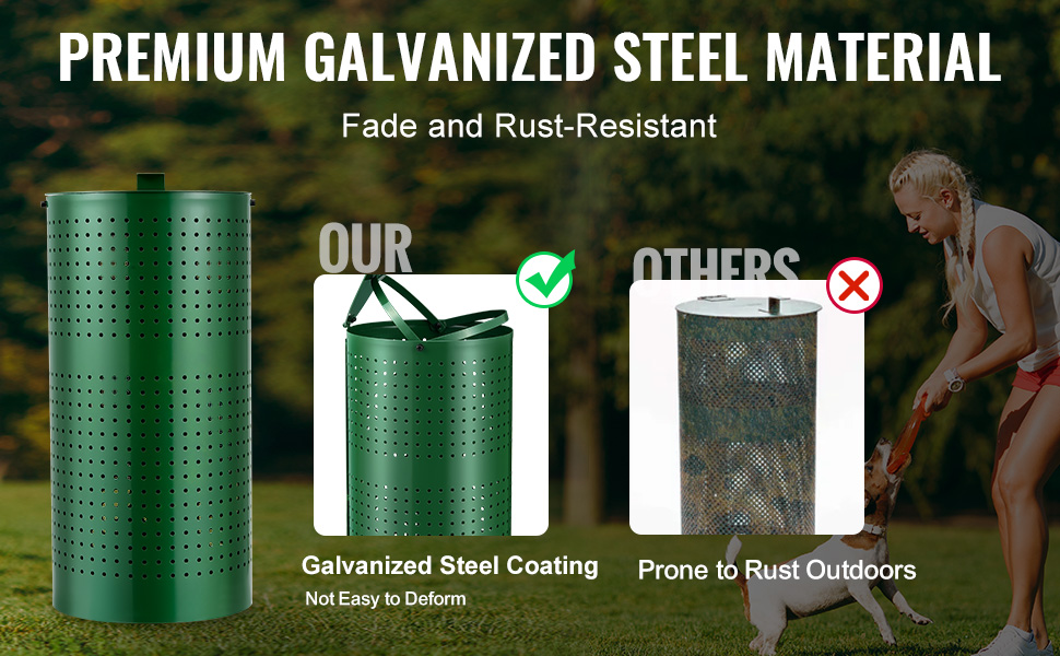 Made from high-quality galvanized steel, this dog waste trash can resists fading and rust, promising long-lasting durability. It’s built to handle whatever your pup throws at it!